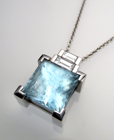 18ct white gold, 5.93ct aquamarine, 0.23ct diamond, 0.33ct diamond.