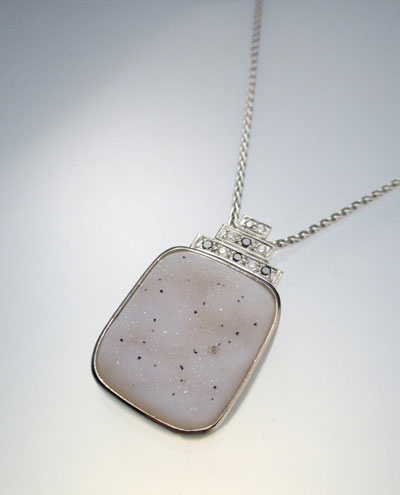 18ct white gold, druzy agate, 0.9ct black diamonds, 0.10ct white diamonds.